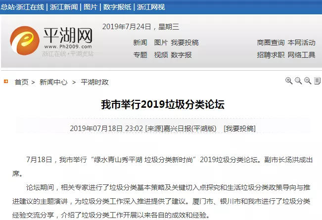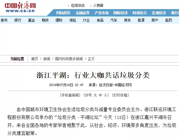 7月18日,由浙江联运环境承办的“垃圾分类·平湖论坛”,受到新华社、新华每日电讯、新华财经、经济日报、中国经济网、参考消息、环境司南等媒体广泛关注。