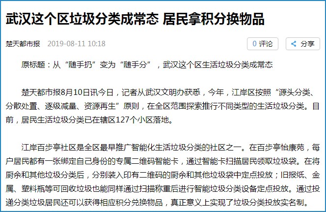 武汉:生活垃圾分类成常态