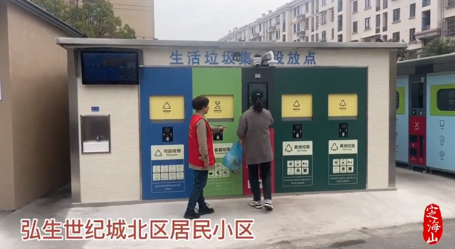 “本小区已开展生活垃圾分类工作,请您按正确类别分类投放,感谢您的配合……”近日,在定海弘生世纪城北区小区入口附近,一台AI智能分类投放箱现身,每当有居民来投放垃圾,该投放箱就会播放语音对居民进行垃圾分类宣传提醒。这是该小区近日“撤桶并点”后新落成的智慧垃圾箱,也是定海首批启用的AI智能分类投放箱。